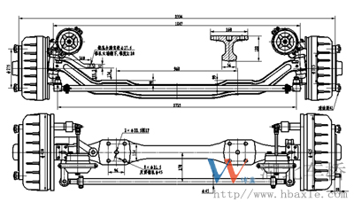 HT30F-033Z3 前橋總成由工字梁、轉(zhuǎn)向節(jié)總成、“S”凸輪、帶滾輪制動(dòng)器總成、制動(dòng)鼓及輪轂總成、轉(zhuǎn)向節(jié)臂、橫拉桿總成等組成。HT24B-128Z3-5.286后橋總成由后置式鑄造橋殼,主減速器總成、“S”凸輪、帶滾輪制動(dòng)器總成、制動(dòng)鼓及輪轂總成、全浮式半軸等件組成。它具有噪音低、運(yùn)行平穩(wěn)、安全系數(shù)高、制動(dòng)性能好等優(yōu)點(diǎn)。
