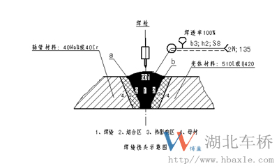 4、軸管環焊接:一般坡口為50°,屬Y型焊縫,焊縫根部間隙為2-5mm,要求焊透率為100%,焊縫余高2-3mm。
