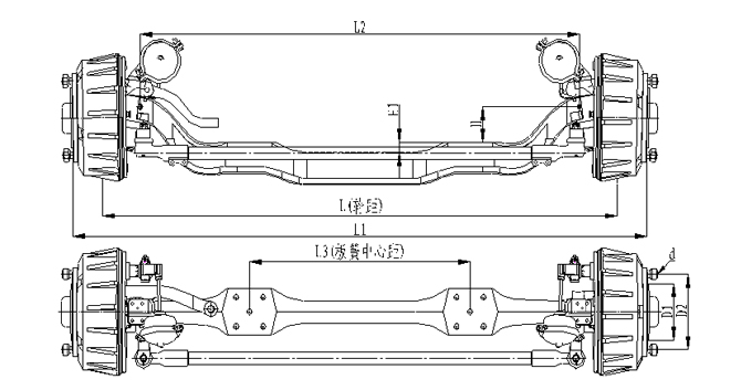 1.前軸為整體鍛造結(jié)構(gòu),采用加強設(shè)計,承載能力強; 2.輪距、板簧距可靈活調(diào)整;3.車輪輪輞定位方式可采用球面定位或止口定位
