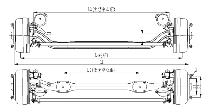 1.前軸為整體鍛造結(jié)構(gòu),采用加強(qiáng)設(shè)計(jì),承載能力強(qiáng); 2.輪距、板簧距可靈活調(diào)整