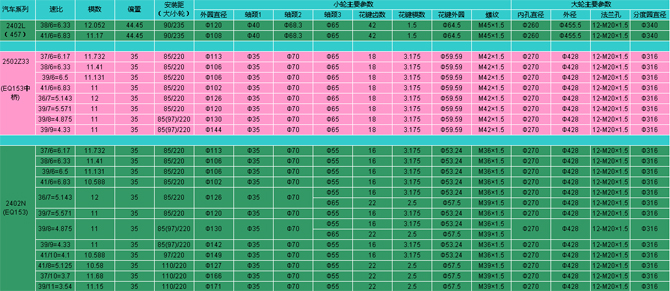 首頁 ? 產(chǎn)品展示 ? 漸縮齒| 汽車系列 | 速比 |