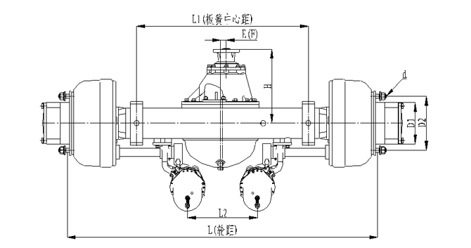 1.橋殼加強型設計,承載能力強;2.車輪輪輞定位方式可采用球面定位或止口定位;3.板簧距與輪距可以靈活調整